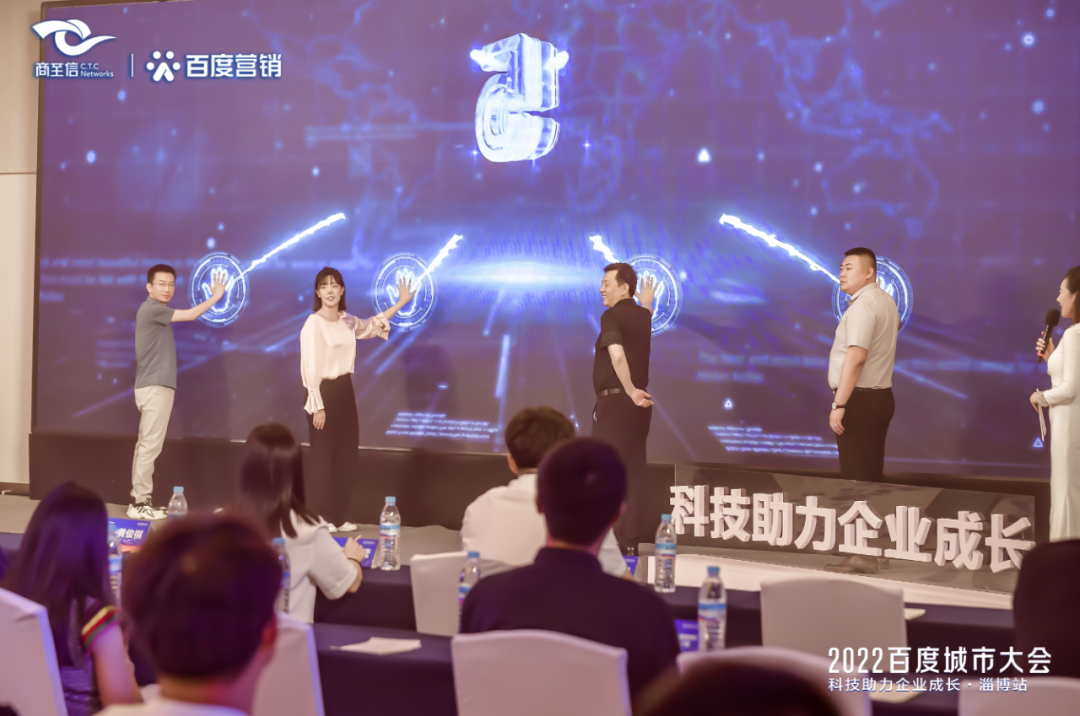 7月28日,“2022百度城市大會—科技助力企業成長”淄博站,在淄博市唐莊大酒店召開。百度移動生態市場部 AI營銷專家包呢喃女士、百度搜索場景商業產品負責人劉波先生、商至信集團副總裁李炳杰先生、商至信淄博分公司總經理黃俊祺先生、商至信淄博分公司商務部總監范瑩瑩女士、商至信淄博分公司推廣運營部總監劉明慧女士及百度本地服務產品主題分享嘉賓李嘉琪先生等人參加。