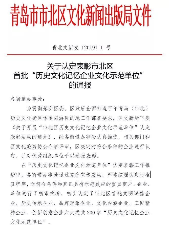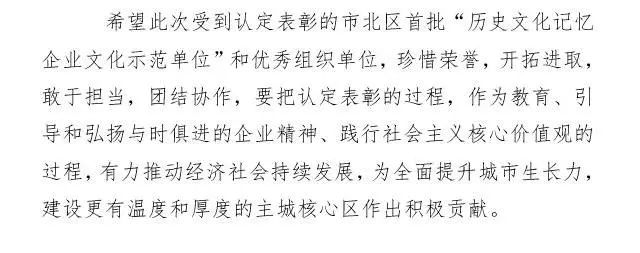 商至信集團(tuán)在本次評(píng)選中榮獲市北區(qū)首批“歷史文化記憶企業(yè)文化示范單位”榮譽(yù)獎(jiǎng)項(xiàng)。